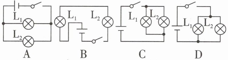 例1 下列电路图中$,L_1$与$L_2$属于串联的是(
