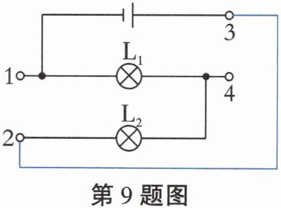 9. 如图所示的电路图,1、2、3、4表示电路的四个连接点,要使两灯串联,画出正确的连接方法。(如图)_____