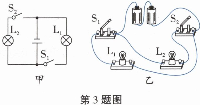 3. 根据如图甲所示的电路图,连接如图乙所示的实物电路。(如图)_____