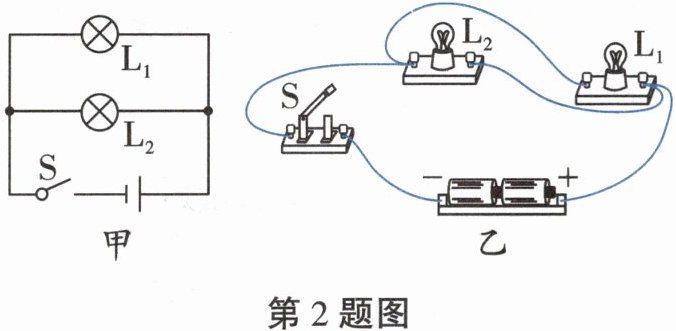 2. 根据如图甲所示的电路图,连接如图乙所示的实物电路。(如图)_____