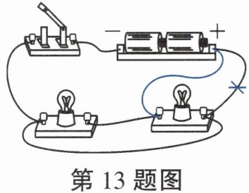 13. (2024 巴蜀中学月考)将如图所示的故障电路改一根线,使它成为并联电路,请在要改动的导线上画“×”,并用笔画线代替导线连接起来。(如图)_____