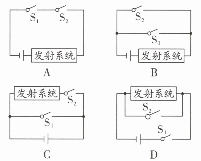 6. (2024重庆一中期中)2024年9月25日,我国向太平洋公海海域发射洲际弹道导弹1枚,跨越12000公里成功落入预定海域,彰显我国军事实力。如下为模拟控制台简略图,发射中心的两名指挥官将各自的钥匙(相当于两个开关)插入发射控制台,同时旋转钥匙接通电路才能激活发射系统。下列电路图符合要求的是
