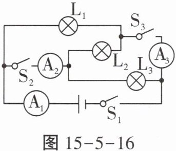 ($选填$“L_2”“L_3”$或$“L_2$和$L_3”)$的电流;三个开关都闭合时$,A_1$的示数是$0.9A,A_2$的示数是$0.6A,A_3$的示数是0.5A,则通过$L_2$的电流为 0.2