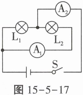 所示的电路中,开关S闭合后,电流表$A_1$与$A_2$的示数之比为3:5,则通过灯泡$L_1、$$L_2$的电流之比为