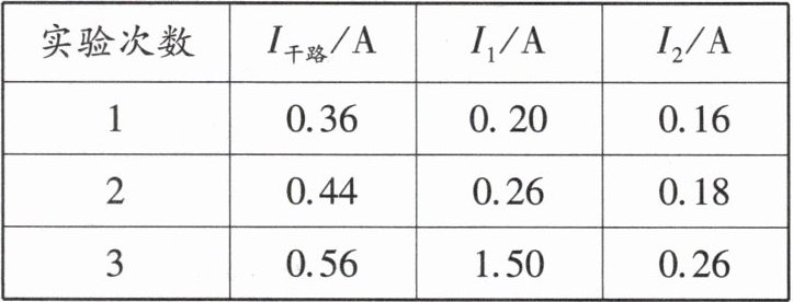 实验次数 $I_{干路}/A$ $I_{1}/A$ $I_{2}/A$