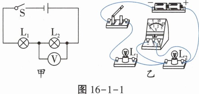 例2 请根据图16-1-1甲的电路图在图16-1-1乙中用笔画线代替导线连接实物图。(电表选择合适的量程,导线不交叉)(如图)_____