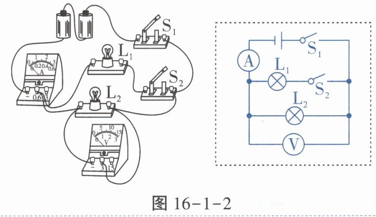 4. 在如图16-1-3所示的电路中,闭合开关后,电压表测量的是(