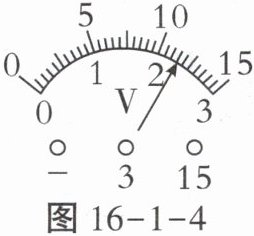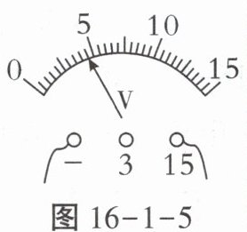 5. 如图16-1-5所示的双量程电压表,其“0~3V”量程的刻度值标示已模糊不清。此时电压表的示数为