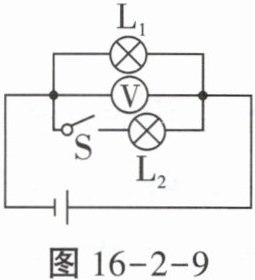 3. 如图16-2-9所示的电路,电源电压保持不变,当开关S闭合时$,L_1、$$L_2$都亮,电压表的示数为3V;当开关S断开时,电压表的示数将(