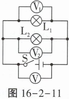 1. 如图16-2-11所示,闭合开关S后,灯泡$L_1$比$L_2$亮,电压表$V_2$的示数为6V。下列说法正确的是(