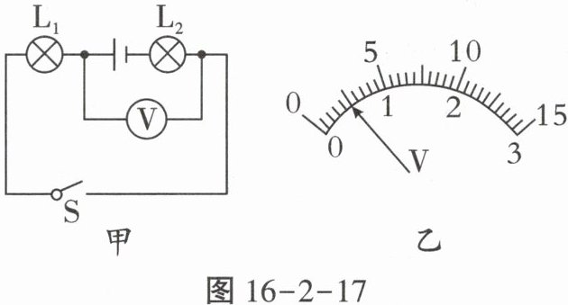 7.(2024巴蜀中学期中)如图16-2-17甲所示的电路,电源电压为3V,使用适当的量程后,闭合开关,电压表的示数如图16-2-17乙所示。下列说法正确的是(