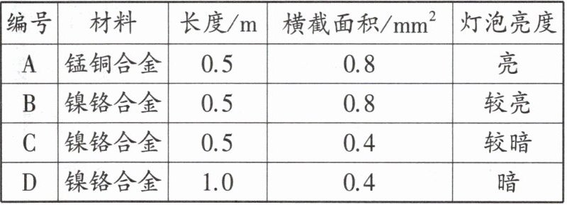 编号 材料 长度/m 横截面积$/mm^2 $灯泡亮度