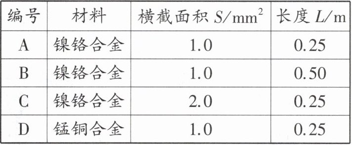 实验室提供了4根电阻丝,其规格、材料如下表所示: