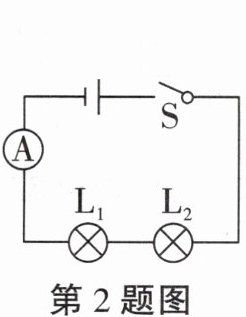 2. 如图所示的电路,闭合开关S后,灯泡$L_1$亮,电流表有示数,但灯泡$L_2$不亮。电路中的故障可能是(