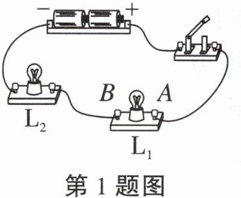 1. 如图所示,电路中的开关闭合后,两灯都不亮,用一根导线连接A、B两点后,灯$L_1$不亮,灯$L_2$亮,若故障只有一处,电路的故障可能是(