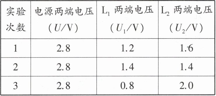 未调零 断开 $U_1 + U_2 = U$ 不能 换其他规格不同的灯泡,进行多次实验 丙
