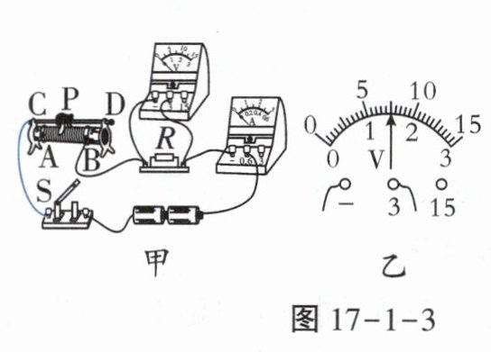 (1)请用笔画线代替导线将图17-1-3甲中的实物电路连接完整。(如图)