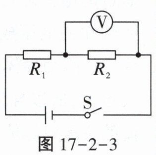 5. 如图17-2-3所示,电源电压恒为12V,电阻$R_{1}$为20Ω,当开关S闭合后,电压表的示数为8V。求:(1)通过电阻$R_{1}$的电流;(2)电阻$R_{2}$的阻值。_____