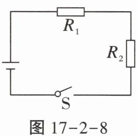 8. 如图17-2-8所示的电路,$R_{1}= 4\Omega$,$R_{2}= 6\Omega$,当开关S闭合时,通过$R_{1}与R_{2}$的电流之比为