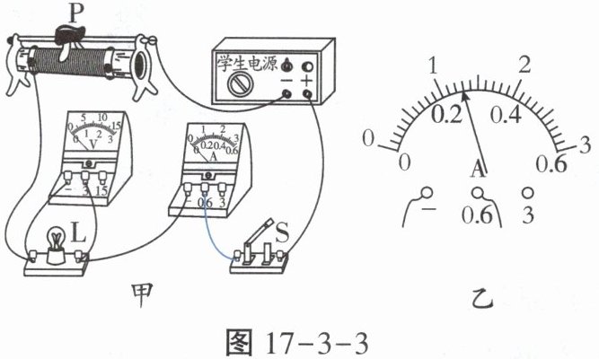 (1)请在图17-3-3甲中用笔画线代替导线,完成实物电路的连接。
