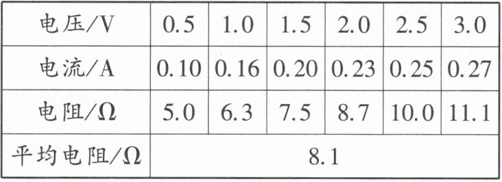 (4)排除故障后继续实验,她将得到的数据记录在表格中。当电压表的示数为2.5V时,电流表的示数如图17-3-3乙所示,为_____A,则小灯泡正常发光时的电阻约为_____Ω(保留一位小数)。她发现小灯泡的电阻发生了变化,其原因是灯丝电阻受_____的影响。