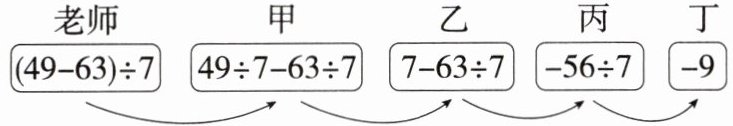 $(49-63)÷7=49÷7-63÷7$,甲正确.