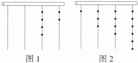 9.「2025湖北襄阳襄州期中,」在我国古代,人们通过在绳子上打结来记录数量,即“结绳记数”,一位母亲在从右到左依次排列的绳子上打结,采取满七进一的方式,用来记录孩子自出生后的天数.例如:图1表示的是孩子出生后30天时打绳结的情况(因为:$4×7^{1}+2= 30$),那么由图2可知,孩子出生后的天数是____