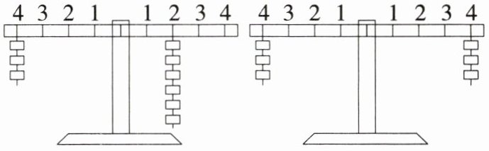 12.新 推理能力 跨 杠杆原理 同学们在探究“杠杆原理”时,通过实验发现:当左边刻度4上放3个砝码时,右边刻度及放砝码数如图所示,两边平衡.想一想:在右边其余刻度上放几个砝码才能保证平衡?