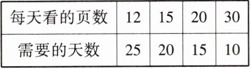 理由:因为 $ 12 \times 25 = 15 \times 20 = 20 \times 15 = 30 \times 10 = 300 $(书的总页数一定),所以每天看的页数与需要的天数之间成反比例关系.