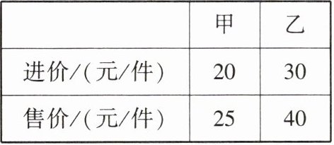 8. [2025河北定州期末,★☆]某超市第一次用7000元购进甲、乙两种商品,其中甲商品的件数是乙商品件数的2倍,甲、乙两种商品的进价和售价如表: