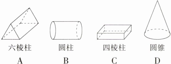 A 选项A中的图形是三棱柱,不是六棱柱.