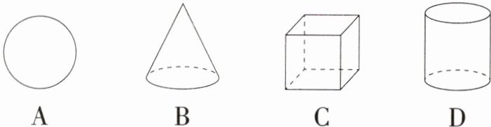 A A.圆属于平面图形;B.圆锥属于立体图形;C.正方体属于立体图形;D.圆柱属于立体图形.故选A.
