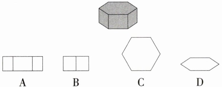 2.「2024山东青岛中考」如图所示的正六棱柱,从上往下看,得到的平面图形是 ( )