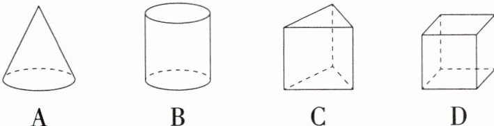 1.「2024四川雅安中考」下列几何体中,从前面看,得到的平面图形是三角形的是 (