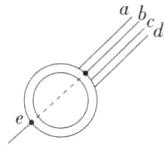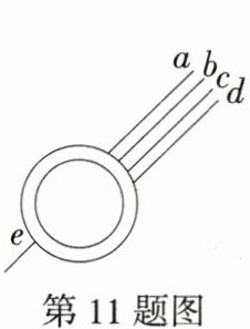 11.「2024 河北保定二模,」图中四条线段 a,b,c,d 和线段 e 在同一条直线上的是 ( )