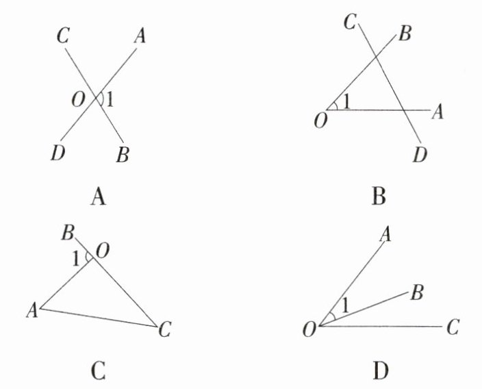 2.「2025北京平谷期末」下列图形中,能用∠1,∠O,∠AOB三种表示方法表示同一个角的图形是(