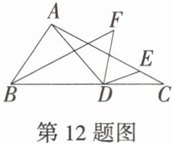 12. [2025 江苏泰州月考,★☆] 如图,$△ABC$中,$∠ABC = 3∠C$,点$D$,$E分别在边BC$,$AC$上,$∠EDC = 20^{\circ}$,$∠ADE = 3∠AED$,$∠ABC的平分线与∠ADE的平分线交于点F$,则$∠F$的度数是(