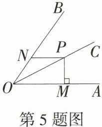 5.「2025重庆西南大学附中期末」如图,OC平分$∠AOB$,P是OC上一点,过点P作$PM⊥OA$于M,$PM= 4$,N是OB上任意一点,连接NP,则NP的最小值为