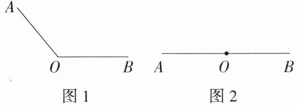 解析 在钝角 $ \angle AOB $ 中,以点 $ O $ 为圆心,适当长度为半径画弧,分别交 $ OA $,$ OB $ 于点 $ M $,$ N $,然后分别以点 $ M $,$ N $ 为圆心,大于 $ \frac{1}{2}MN $ 的长为半径画弧,两弧交于点 $ C $,作射线 $ OC $,如图 1 所示,射线 $ OC $ 即为钝角 $ \angle AOB $ 的平分线;在平角 $ \angle AOB $ 中,以点 $ O $ 为圆心,适当长度为半径画弧,分别交 $ OA $,$ OB $ 于点 $ M $,$ N $,然后分别以点 $ M $,$ N $ 为圆心,大于 $ \frac{1}{2}MN $ 的长为半径画弧,两弧交于点 $ C $,作射线 $ OC $,如图 2 所示,射线 $ OC $ 即为平角 $ \angle AOB $ 的平分线