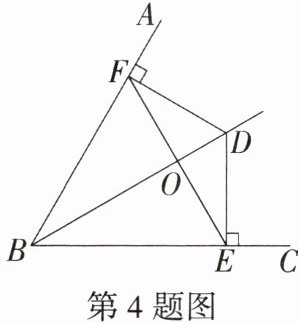 4.如图,D是$∠ABC$平分线上的一点,$DE⊥BC,DF⊥AB$,垂足分别为E,F,连接EF,交BD于点O.已知$∠EDF= 120^{\circ }$,则$∠DEF$的度数为(
