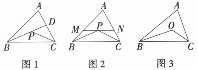 (3) 根据三角形的三边关系可得 $BO + CO > BC$,易得 $BO + CO < AB + AC$,$\because AB = 6$,$AC = 5$,$BC = 7$,$\therefore 7 < BO + CO < 11$.