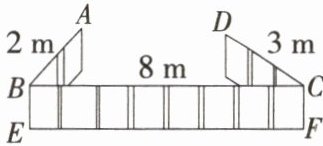B 由题图可知 $BC = 8$ m,$AB = 2$ m,$CD = 3$ m,设在篱笆 $CD$ 上接上新的篱笆的长度为 $x$ m,若要围成一个三角形的空地,则 $8 - 2 < 3 + x < 8 + 2$,解得 $3 < x < 7$,故选B.