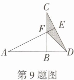 9.「2025天津期末」如图,$CB ⊥ AD, AE ⊥ CD$,垂足分别为 B,E,AE,BC 相交于点 F,若$AB = BC = 16, CF = 8$,连接 DF,则图中阴影部分的面积为____