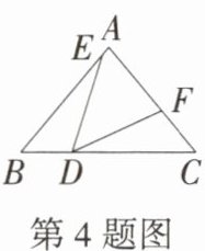 4.「2025浙江杭州期末」如图,在$\triangle ABC$中,$∠B = ∠C = 50^{\circ}, BD = CF, BE = CD$,则$∠EDF$的度数是 (