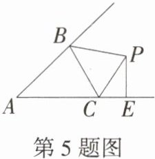 5.「2025广东广州期末」如图,$\triangle ABC$的两外角的平分线 BP,CP 交于点 P,$PE ⊥ AC$交 AC 的延长线于点 E.若$\triangle ABC$的面积为 10,$\triangle BPC$的面积为 7,$PE = 4$,则$\triangle ABC$的周长为 ( )