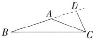 ② 如图,当等腰三角形 $ ABC $ 的顶角 $ \angle BAC $ 是钝角时,$ CD $ 是 $ \triangle ABC $ 的边 $ BA $ 上的高,
