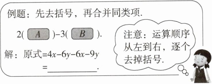 17.「★☆」如图所示的是一道例题及部分解答过程,其中 $A, B$ 是两个关于 $x, y$ 的二项式.