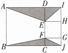 14.「2025 贵州毕节期末, ★☆」如图,点 $D, C, H, G$ 分别在长方形 $ABJI$ 的边上,点 $E, F$ 在 $CD$ 上,若正方形 $ABCD$ 的面积等于 10,图中阴影部分的面积和为 4,则正方形 $EFGH$ 的面积为 (