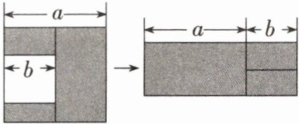 6. 如图,在边长为$ a 的正方形中挖掉一个边长为 b $的小正方形,把余下的部分拼成一个长方形(无重叠部分),通过计算两个图形中阴影部分的面积,可以验证的一个等式是(