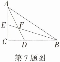 7.「2025山西忻州期中,★☆」如图,小明在计算机上用“几何画板”画了一个$Rt\triangle ABC$,$∠C= 90^{\circ }$,并画出了两锐角的平分线AD,BE及其交点F.小明发现,无论怎样变动$Rt\triangle ABC$的形状和大小,$∠AFB$的度数是定值,则这个定值为(